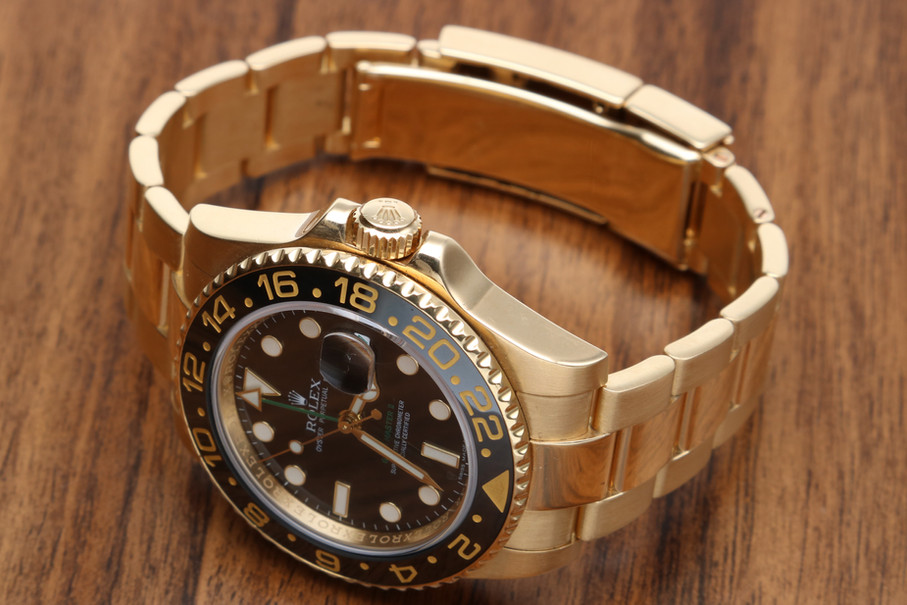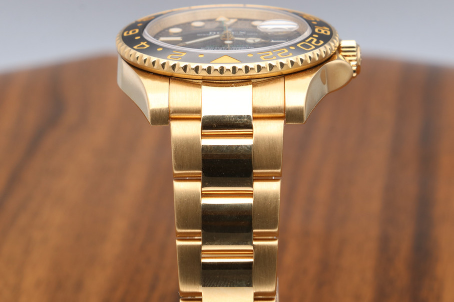 Produzido em ouro amarelo 18 quilates, o relógio apresenta mostrador preto elegante, com marcadores aplicados e ponteiro adicional de 24 horas que permite a leitura simultânea de dois fusos horários. A luneta Cerachrom preta em cerâmica de alta resistência confere durabilidade e um contraste sofisticado ao design robusto da caixa Oyster.